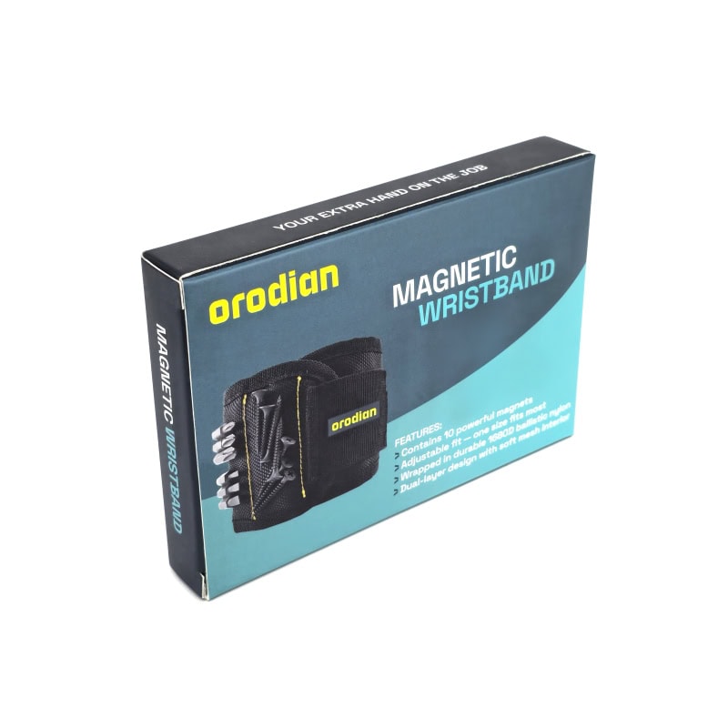 Náramek je vybaven deseti neodymovými magnety, které bezpečně udrží přiložené předměty. Vyroben je z měkké, prodyšné a voděodolné oxfordské balistické nylonové tkaniny 1680D, která zaručuje komfort a dlouhou životnost. Lehký materiál zajišťuje pohodlí při nošení i během celodenní práce.